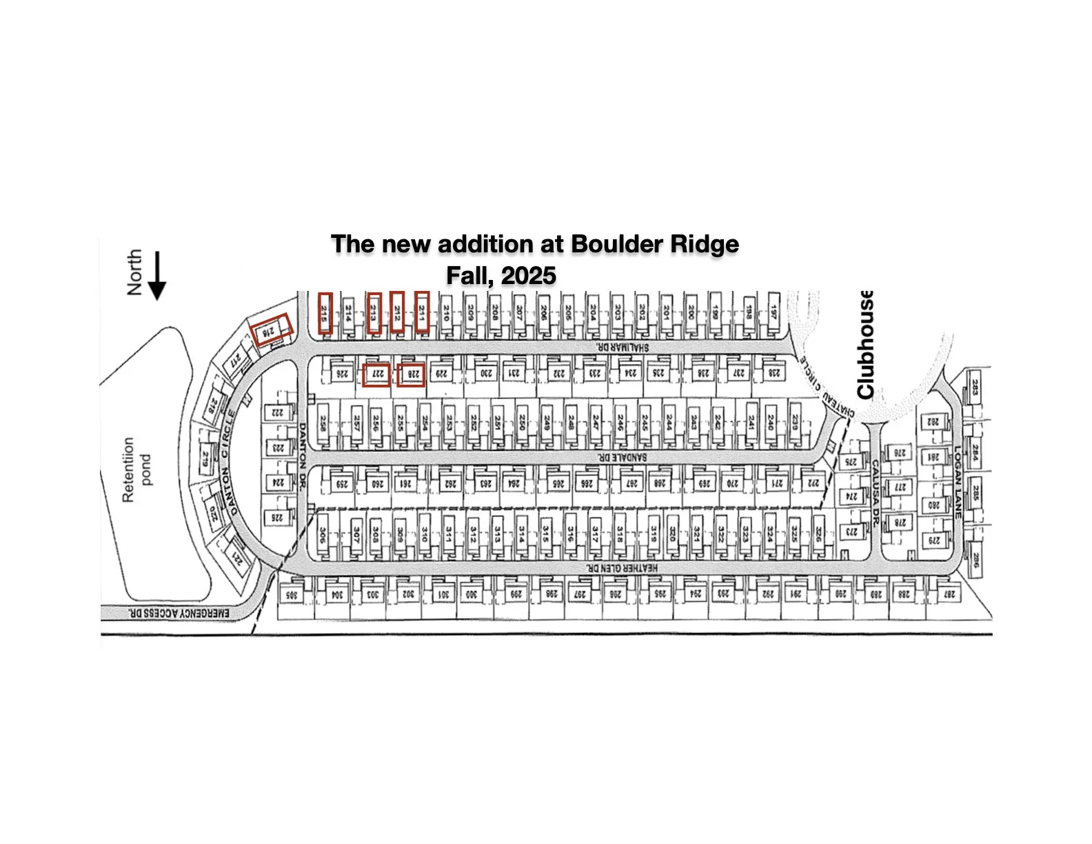 Lots for new homes being constructed are outlined in red above for your convenience.